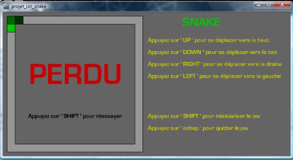 Et si le carré sort de la grille, nous perdons et le serpent fait alors le tour de la grille de jeu :