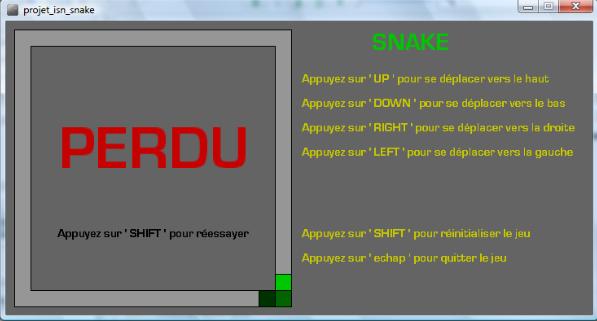 text(" Appuyez sur ' SHIFT ' pour réessayer ",60,265); // effiche le texte dans la fenetre