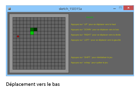 if (keyCode == DOWN) { b = true; a=false;c=false;d=false;} // si on appuie sur la fleche BAS, le carré se déplace uniquement vers le bas