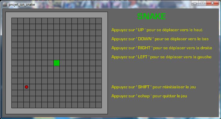Ainsi, nous avons aggrandi la fenetre de jeu, puis affiché le titre et les instructions du jeu sur la gauche de la fenetre, et mis en place une ligne contournant la grille de jeu que nous avons coloré de gris clair, et nous obtenons le résultat suivant :